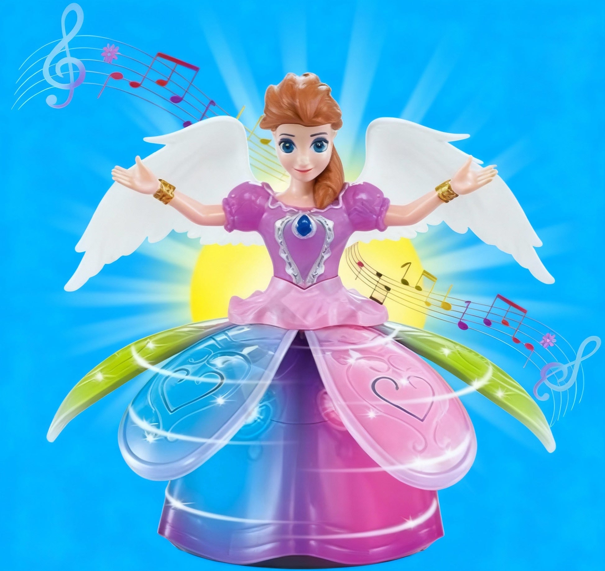 Musical Rotating Angel Princess Doll: Colorful dancing princess doll with glowing lights, music, and moving wings — perfect for kids’ entertainment, encouraging fun, rhythm, and imaginative play.