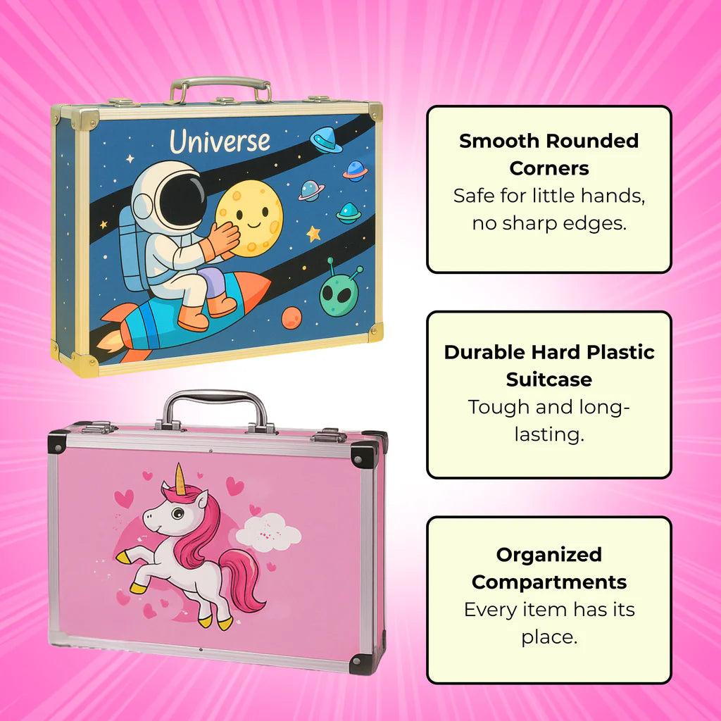 All-in-One Kids Art Suitcase – 145-Piece Set with 24+ Vibrant Colors.