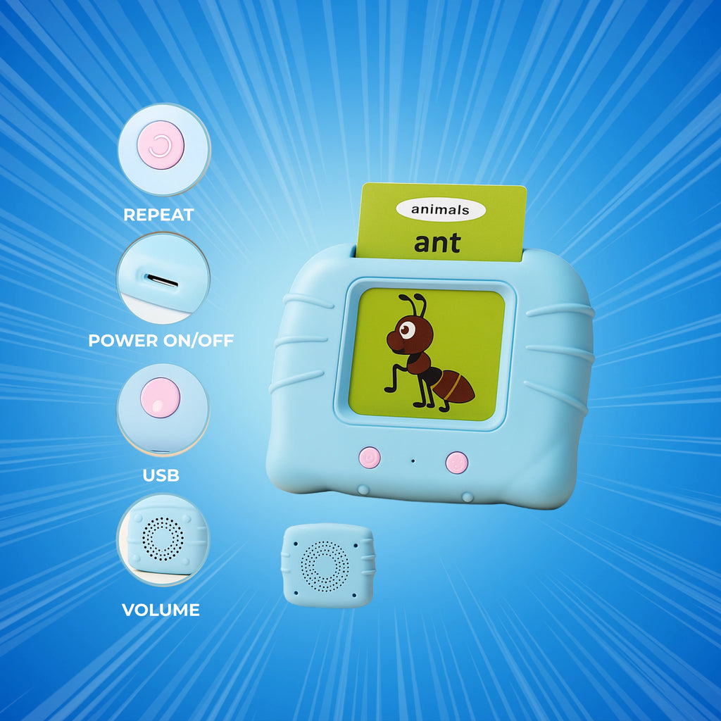 Easy to Use – Just turn it on, insert a card, hear the word, and press to repeat.